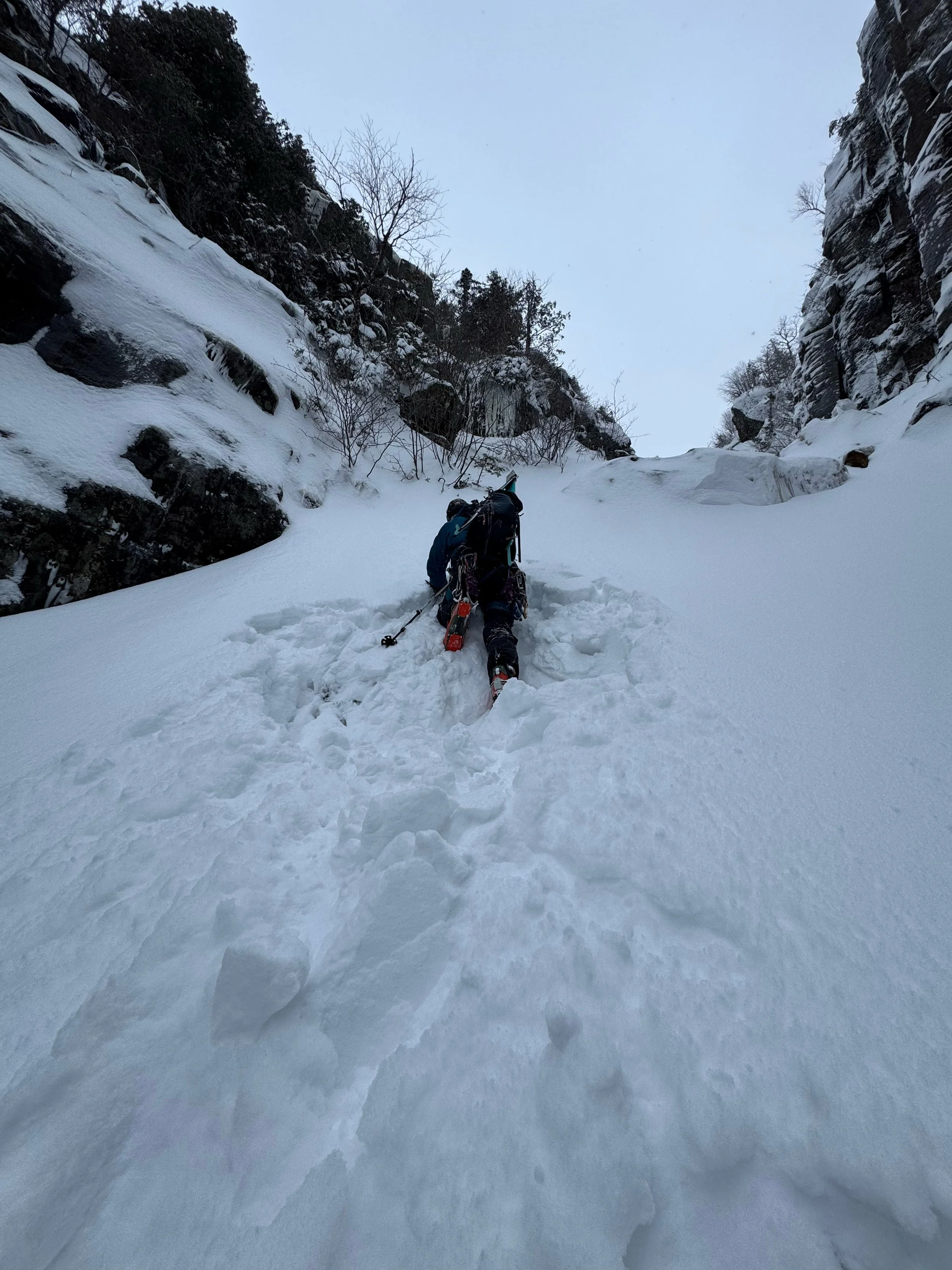 The Trap Dike is a classic mountaineering objective in the Adirondacks. This route was first climbed by James Goodwin in 1935, before he went on to serve as an instructor and medic for the Army's 10th Mountain Division during World War II.
